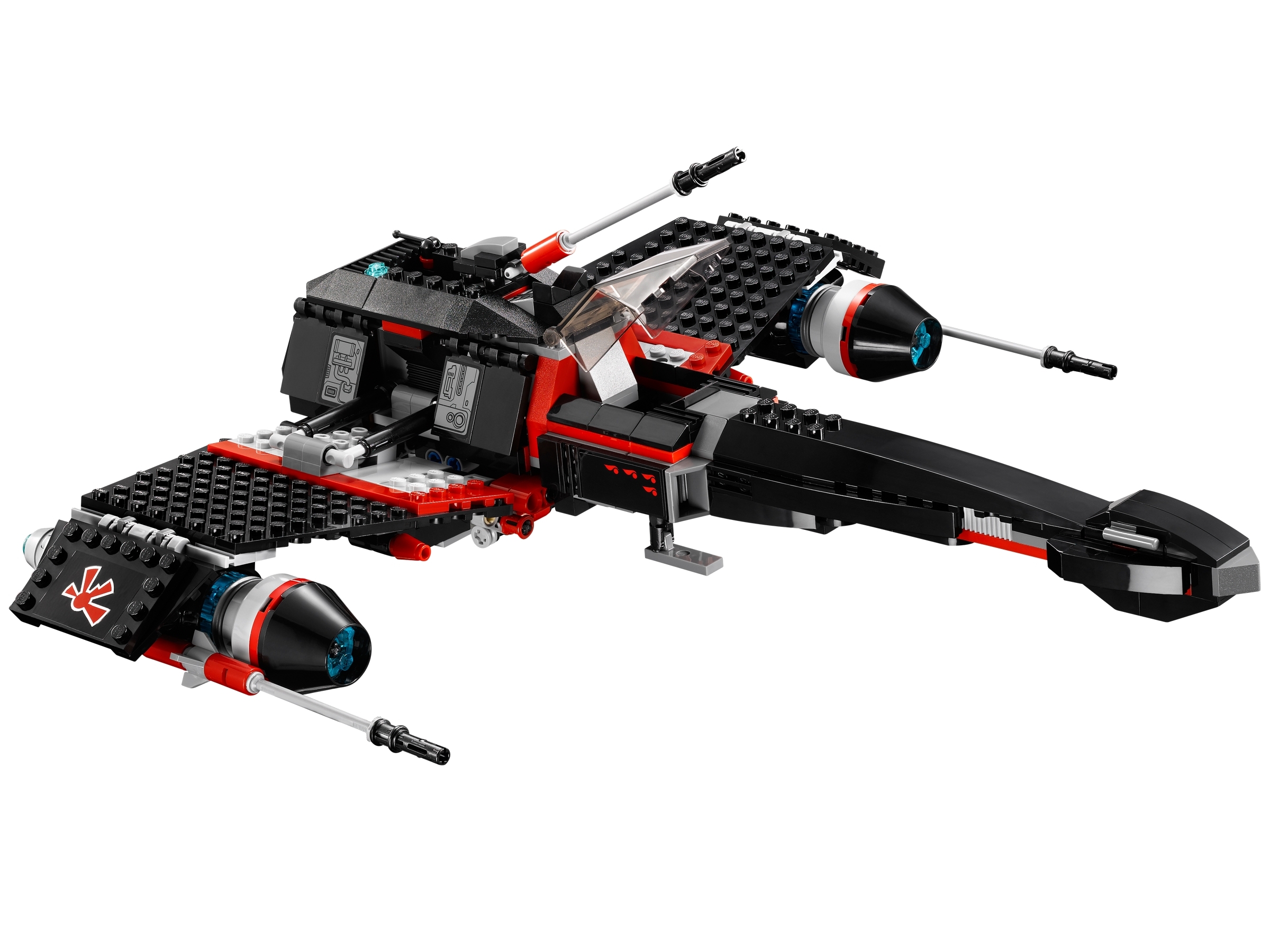 • Features retractable landing gear, opening cockpit with space for a minifigure, folding wings, rotating and elevating blaster cannon, R4-G0™ astromech droid, storage compartment with holocron and 2 flick missiles