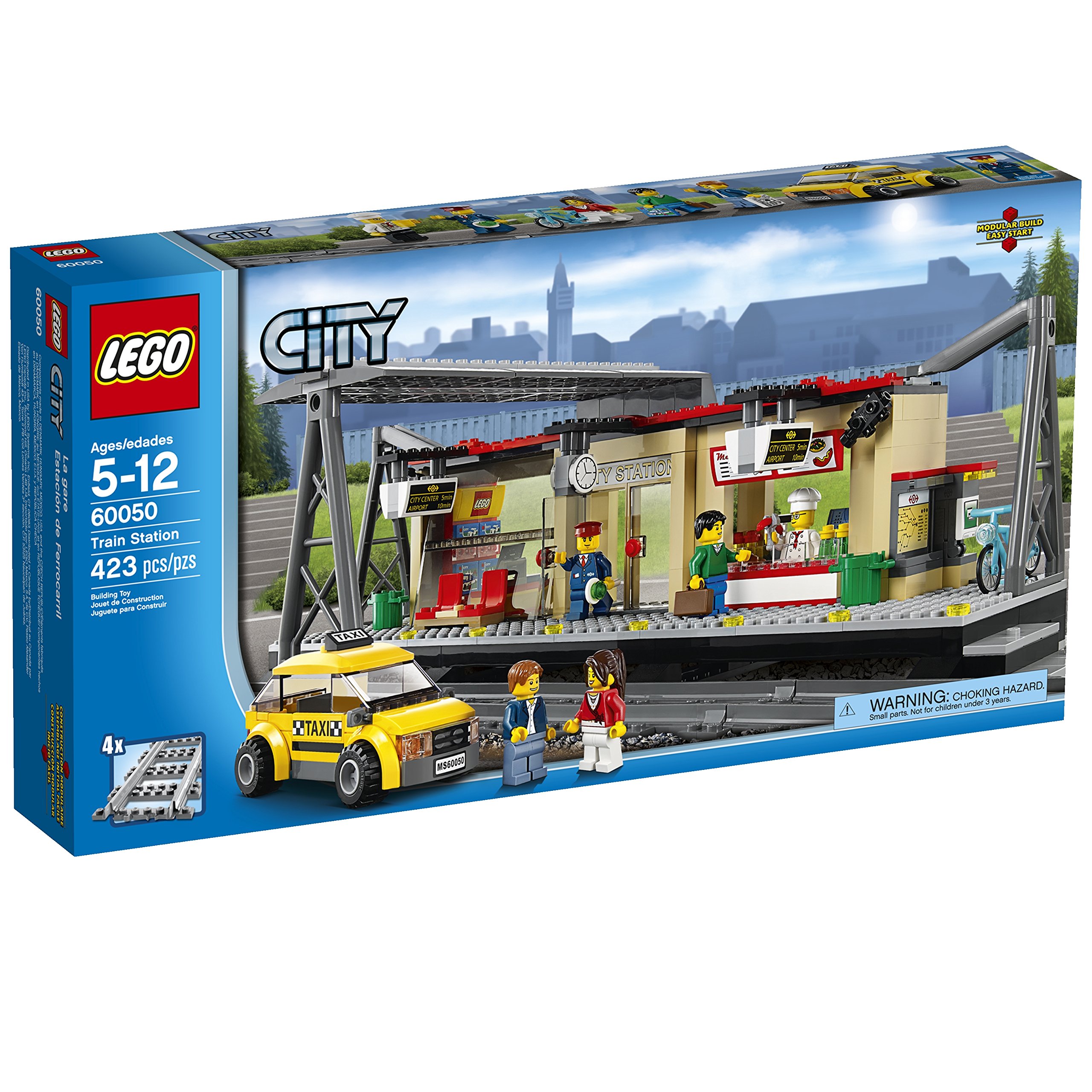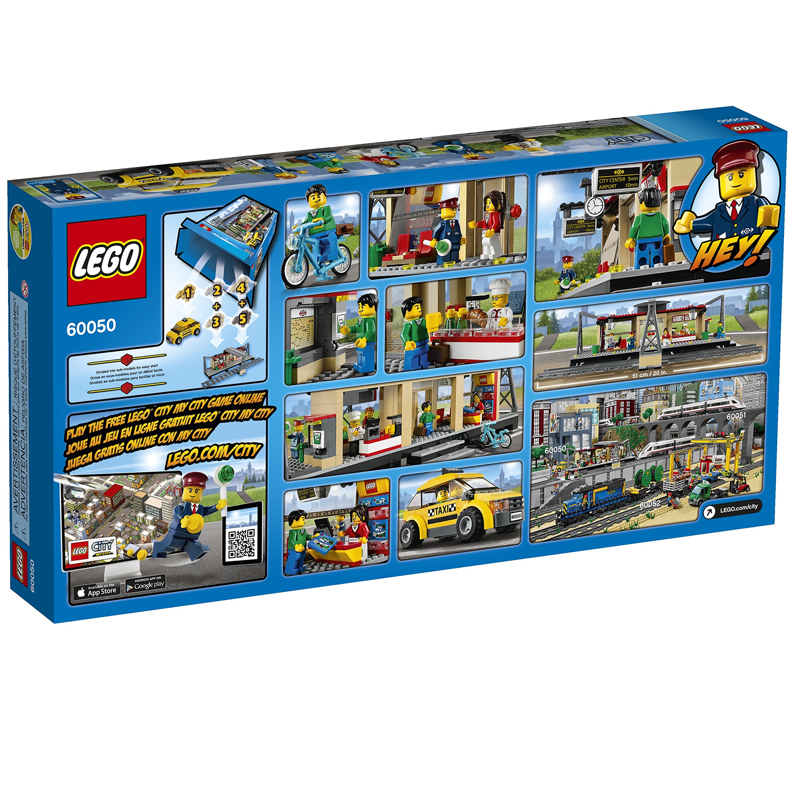 Neem een taxi naar het drukke LEGO® City Treinstation, waar altijd van alles gebeurt! De reizigers lopen de trap op naar de deuren die voor ze opengaan. Ze kijken op de grote klok die aan het plafond hangt en kunnen op de dienstregeling naast de geldautomaat zien naar welk perron ze moeten gaan. Wachtende reizigers kunnen in de LEGO® City winkel iets voor onderweg kopen. Lekkere trek? Ga dan naar de kiosk voor een croissant of pizza en een drankje. Het menu hangt boven de toonbank. Op het perron staan banken waar al dat lekkers kan worden opgegeten en -gedronken. Inclusief 5 minifiguren: conducteur, perronchef, taxichauffeur en 2 reizigers.